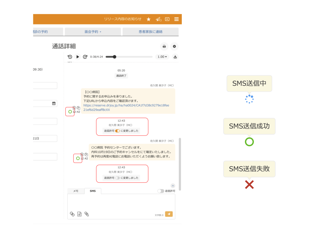 「SMS関連」に「返信許可時のSMSメッセージ」設定項目を追加し、施設の運用やトーンに合わせて自由に編集できるようになりました。