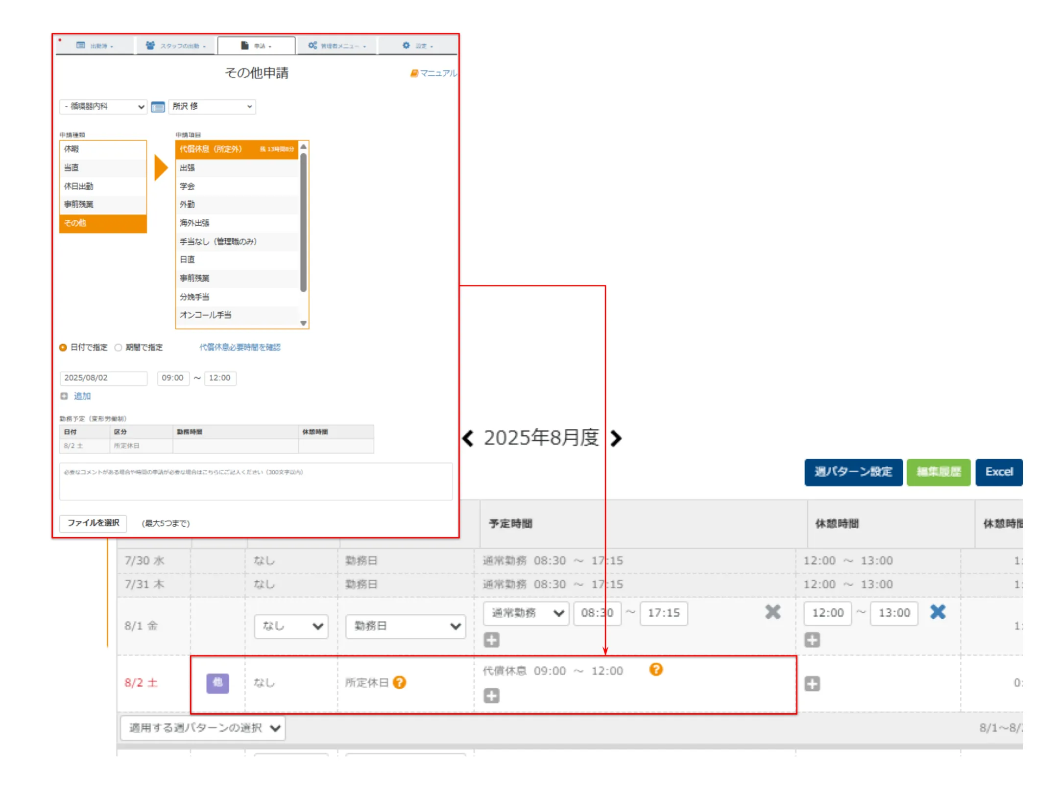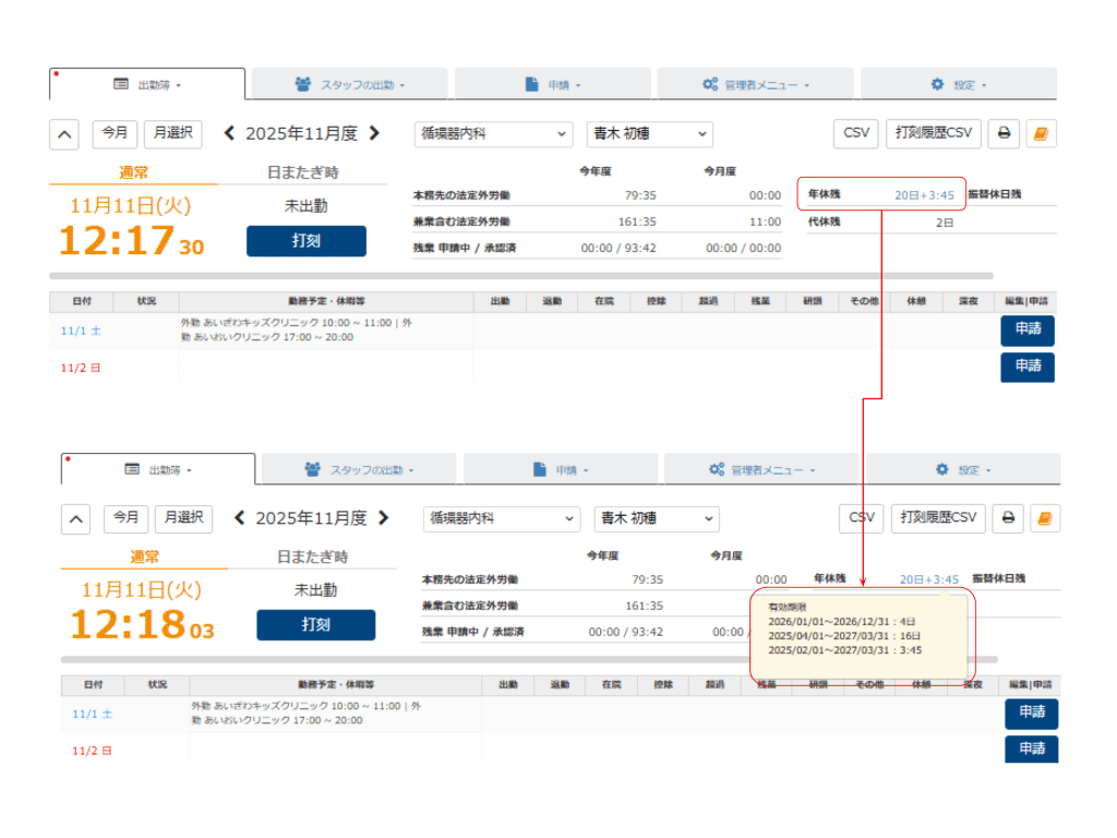 本対応により、テンプレート機能上で「許可あり宿日直中の残業申請承認時間」を集計・確認でき、配慮が必要なケースの把握が可能になりました。