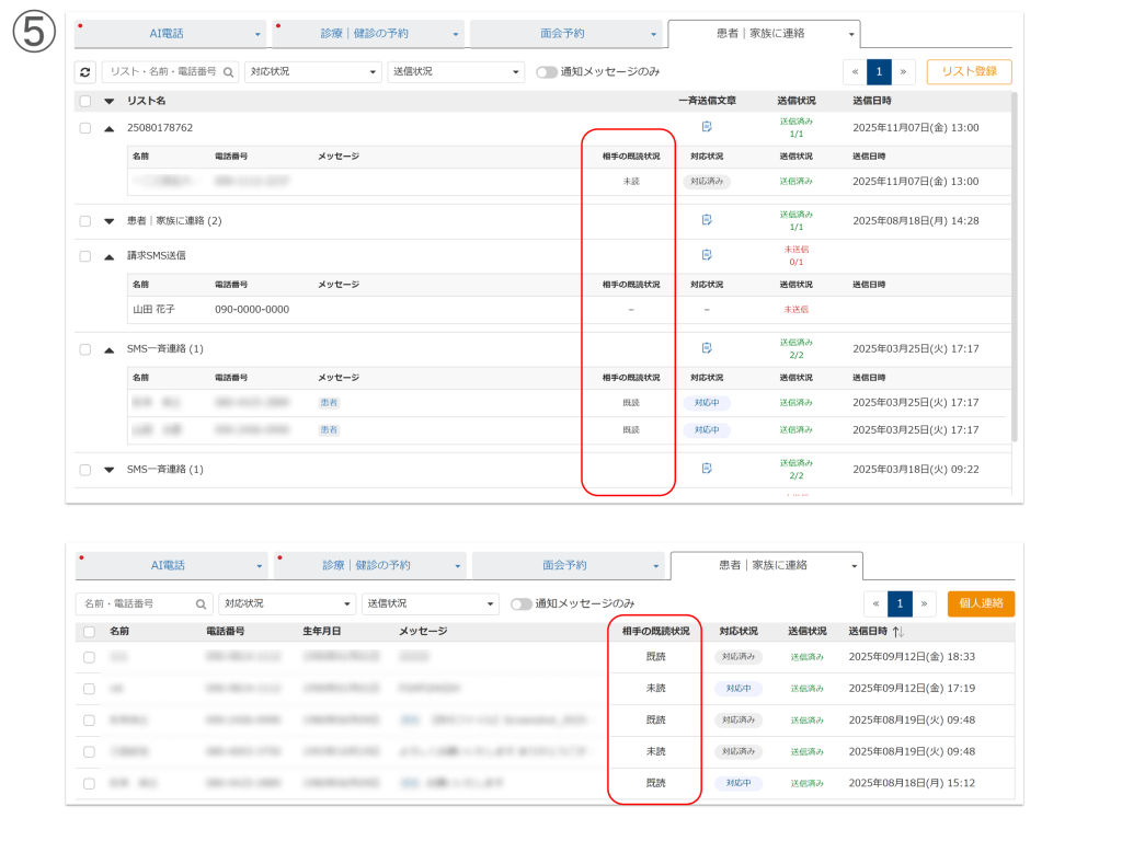 ③ 「一斉連絡」「個別連絡」の切り替えは別のタブで操作します。