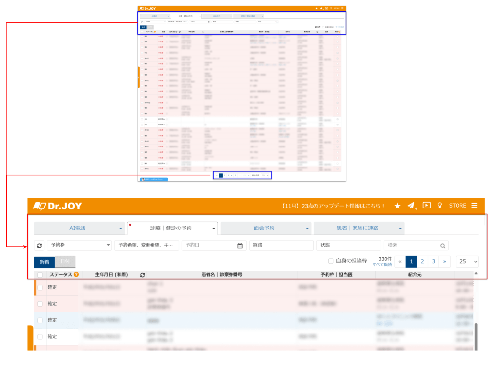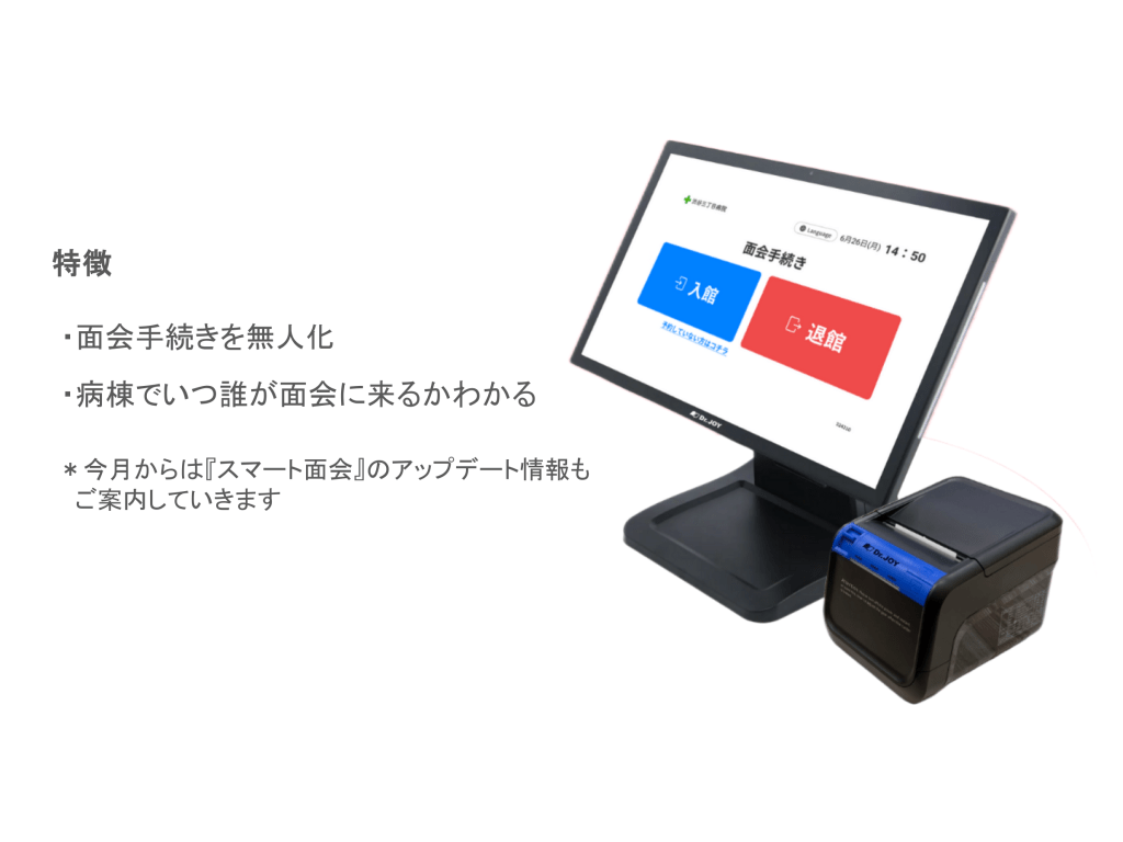 - アップデート内容:入館時にタブレットで電話番号を入力すると、フリーパス対象または当日の面会予約がある患者が一覧で表示され、対象の患者を選択して面会できるようになりました。