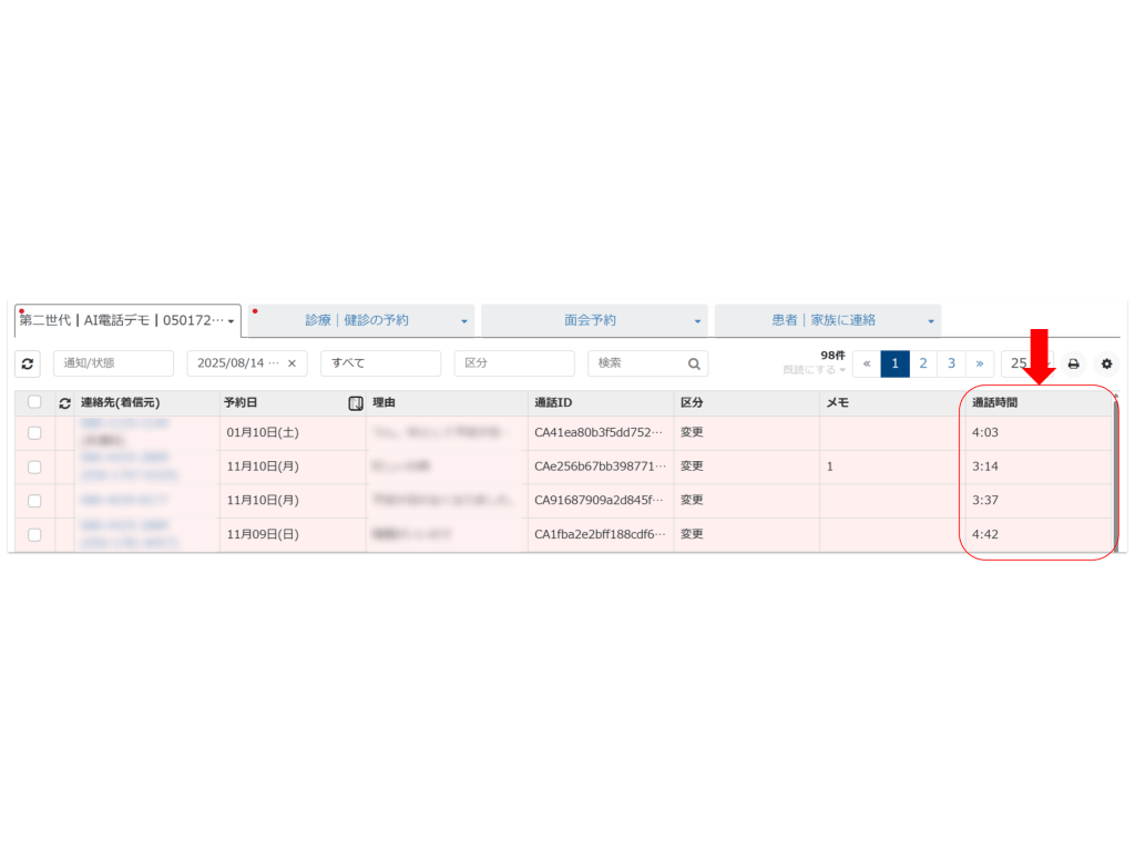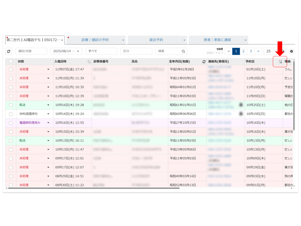 一覧画面において、表示内容が確認しづらい課題を解消するため、列幅調整・並び替え機能を追加しました。(AI電話一覧と同様)