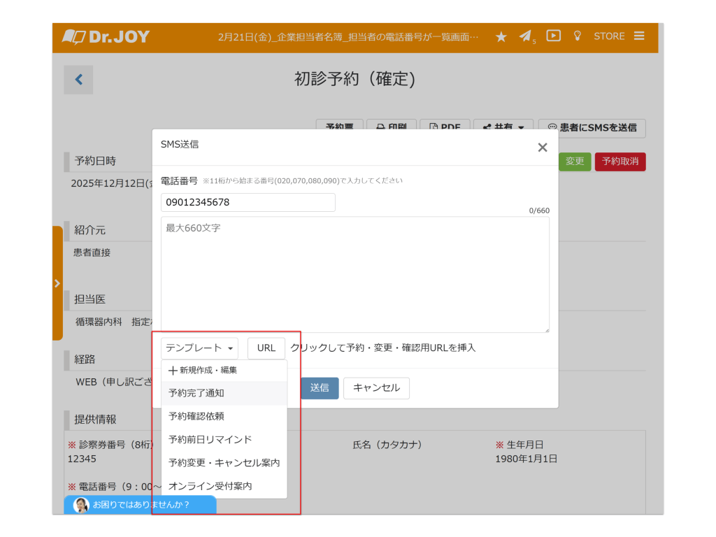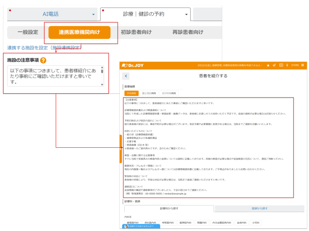 部署ごとに発信元電話番号と部署名(診療科名)を設定できるようにしました。電話番号設定は弊社にて行います。