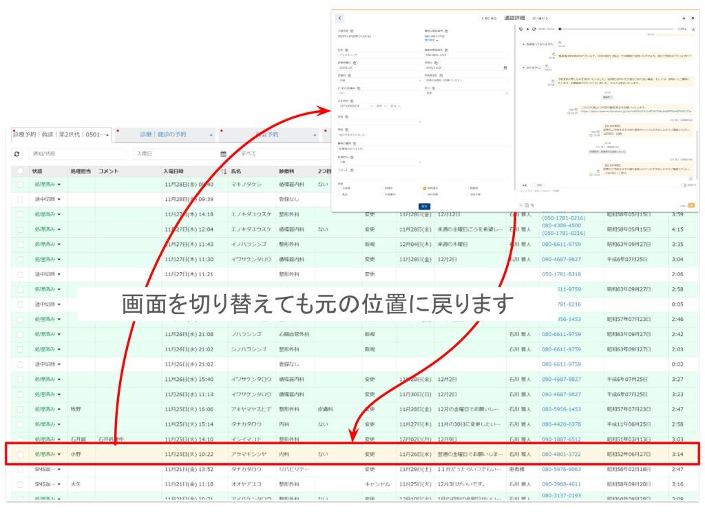 【AI電話一覧のスクロール位置保持の対応】