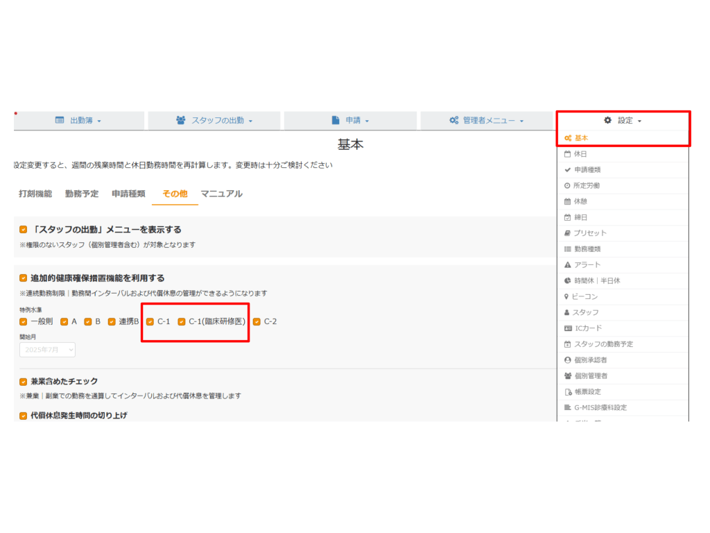 ・C-1水準(臨床研修医)を設定した場合、以下のルールが適用されます。