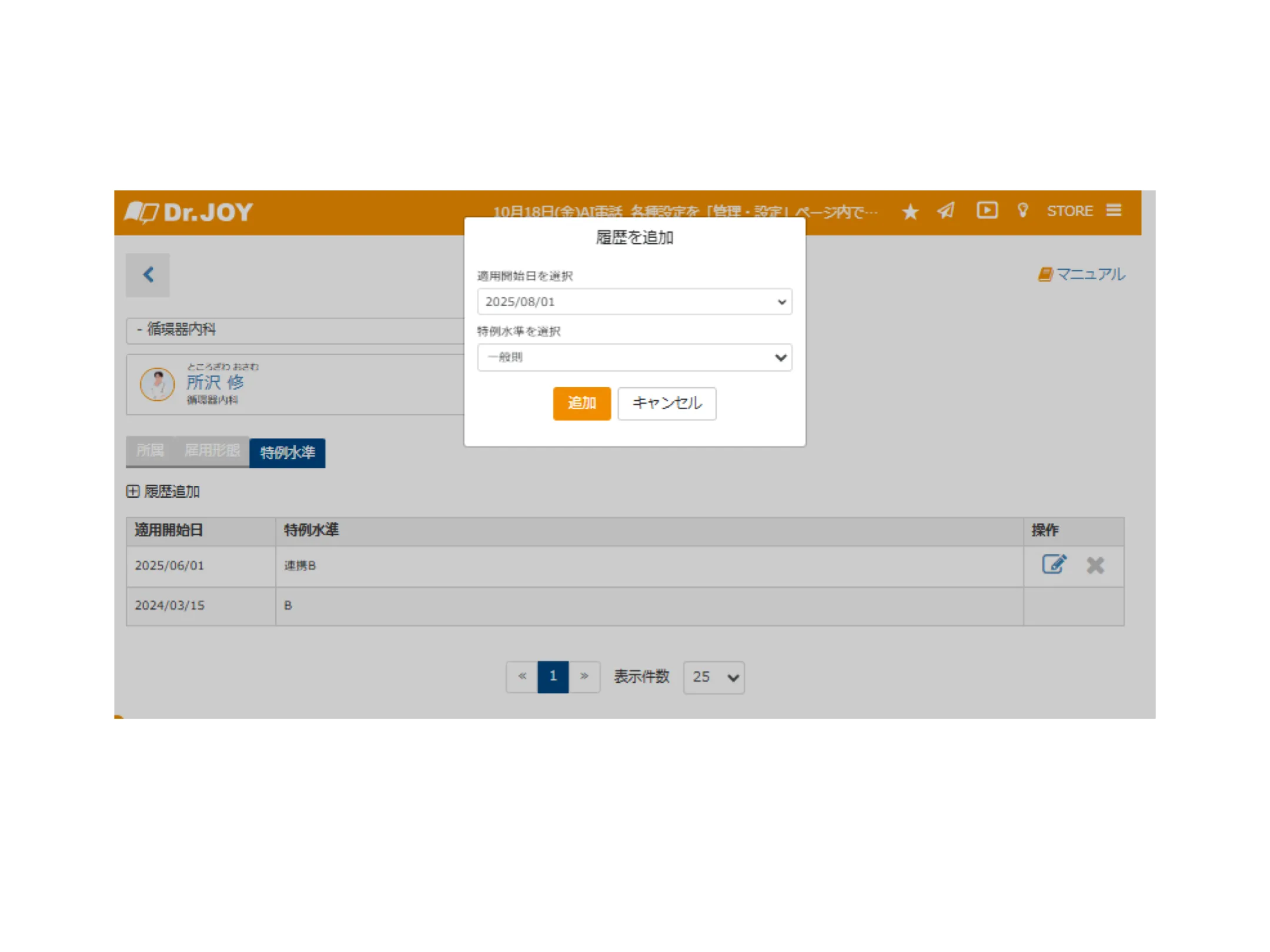 これまで水準を「C-1」としていたスタッフは、自動的に「C-1水準(臨床研修医)」へ変更されています。