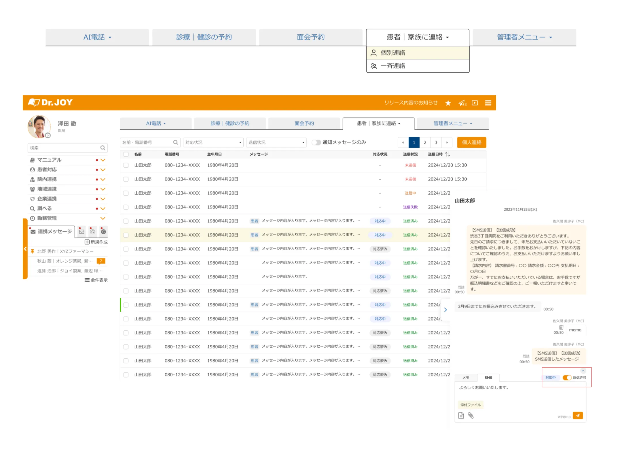 また、同一の電話番号で複数患者へのフリーパス設定が可能になりました。