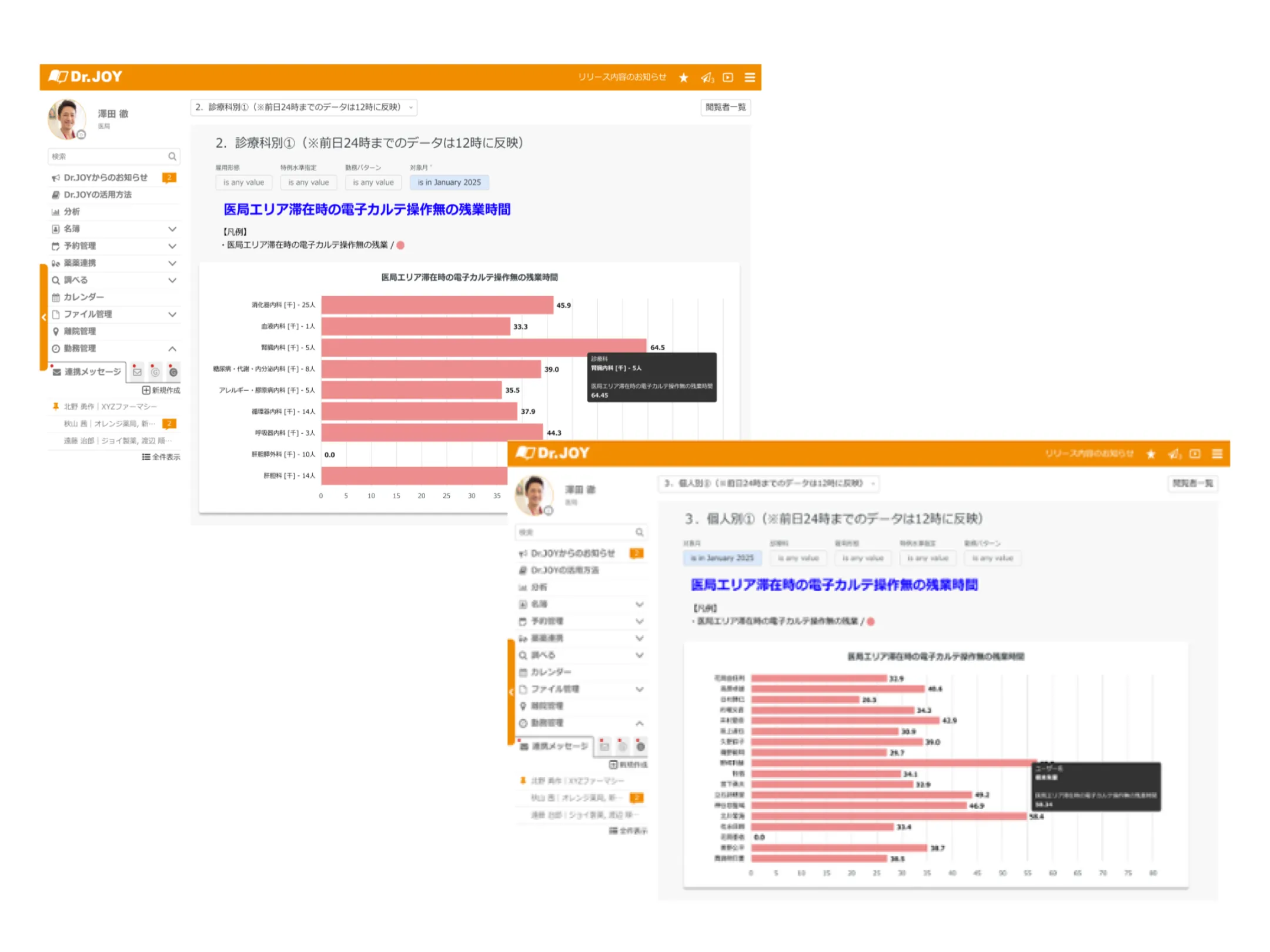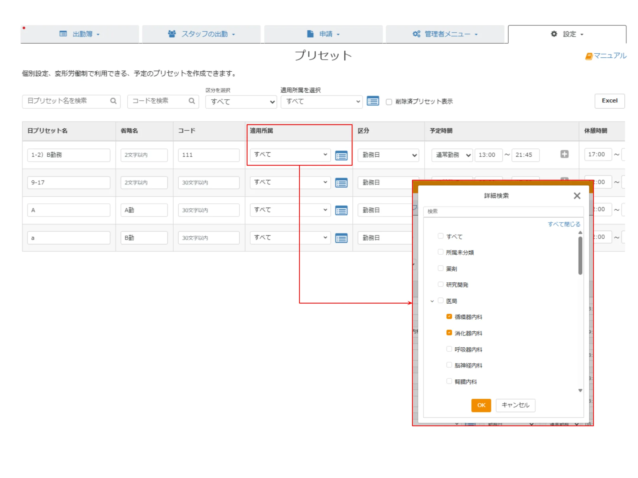 ② 選択中の部署名(診療科名)を上部に表示します。