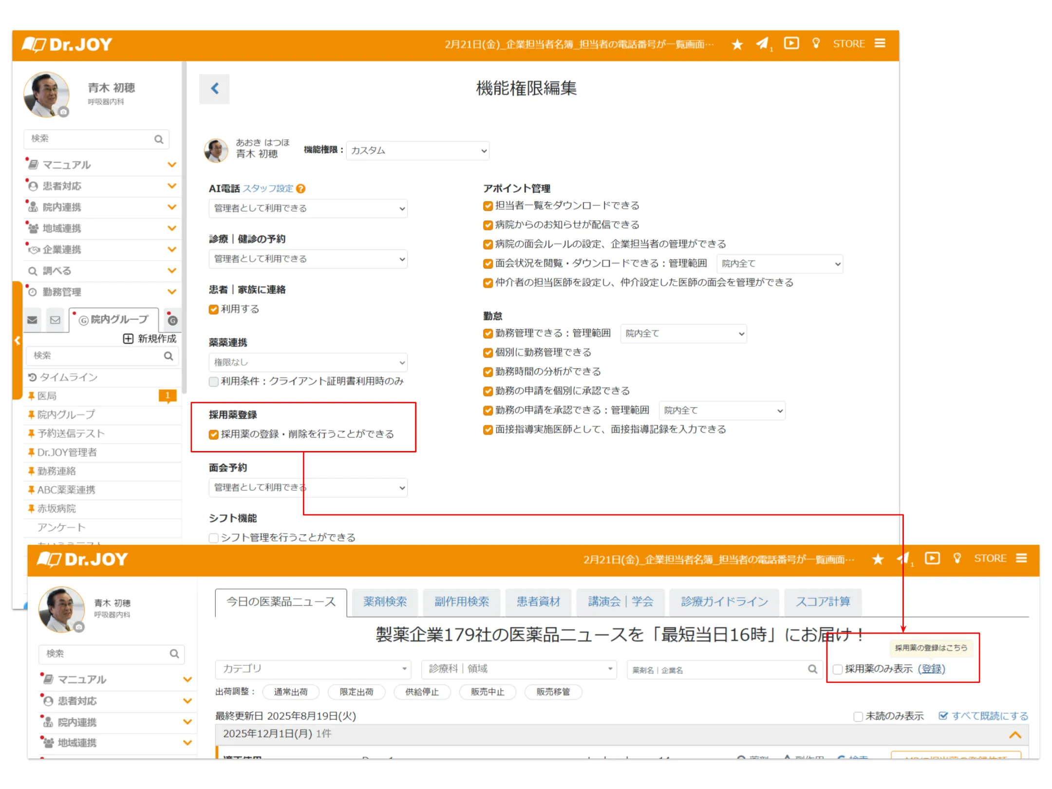採用薬を CSV 経由でなく、画面上から個別に削除できるようにしました。