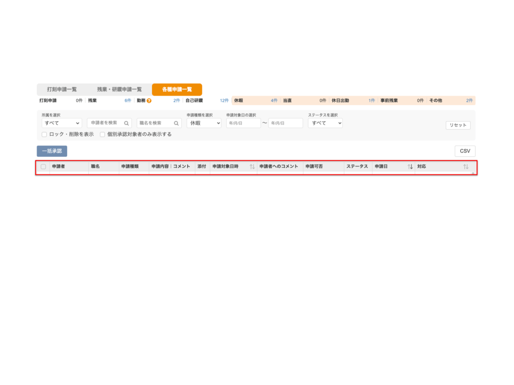 ※未申請の超過時間や未承認の申請などを一覧で確認することが可能になります