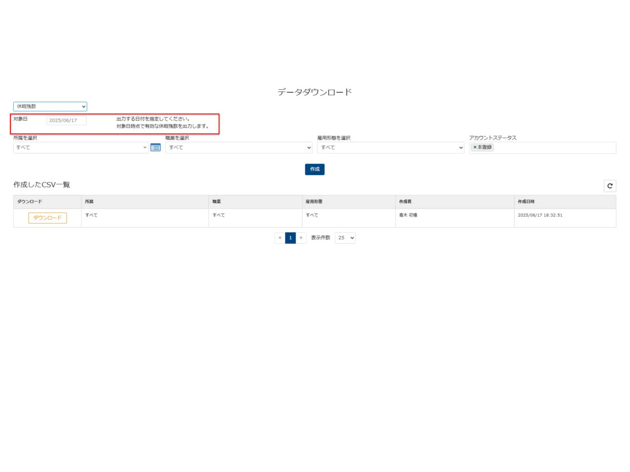 【対象日を指定しての休暇残数のCSVデータ出力が可能になりました】