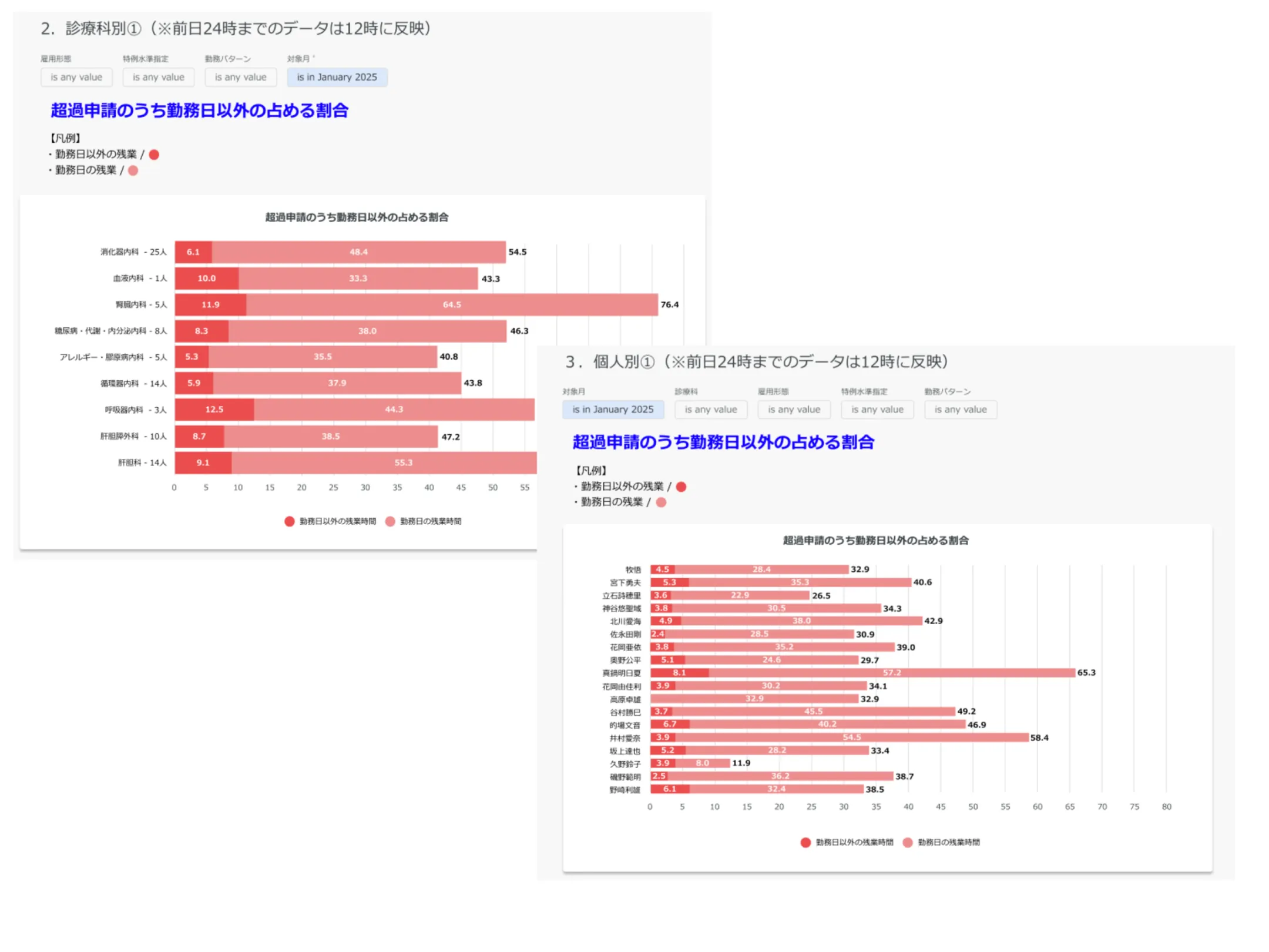 超過勤務申請のうち「勤務日以外」が占める割合を表示します。