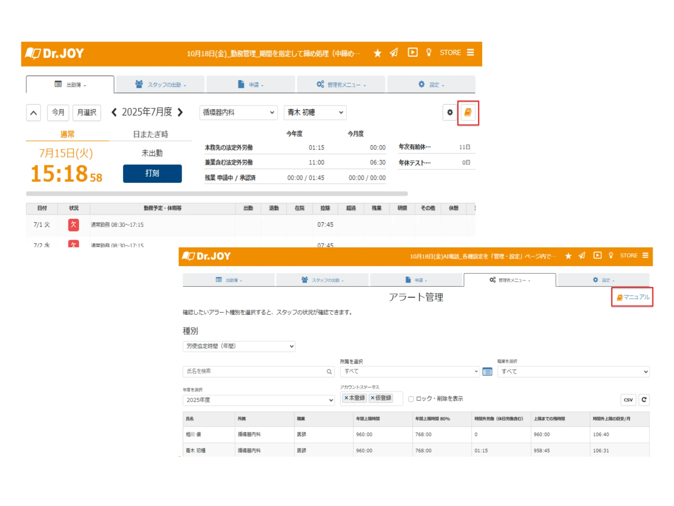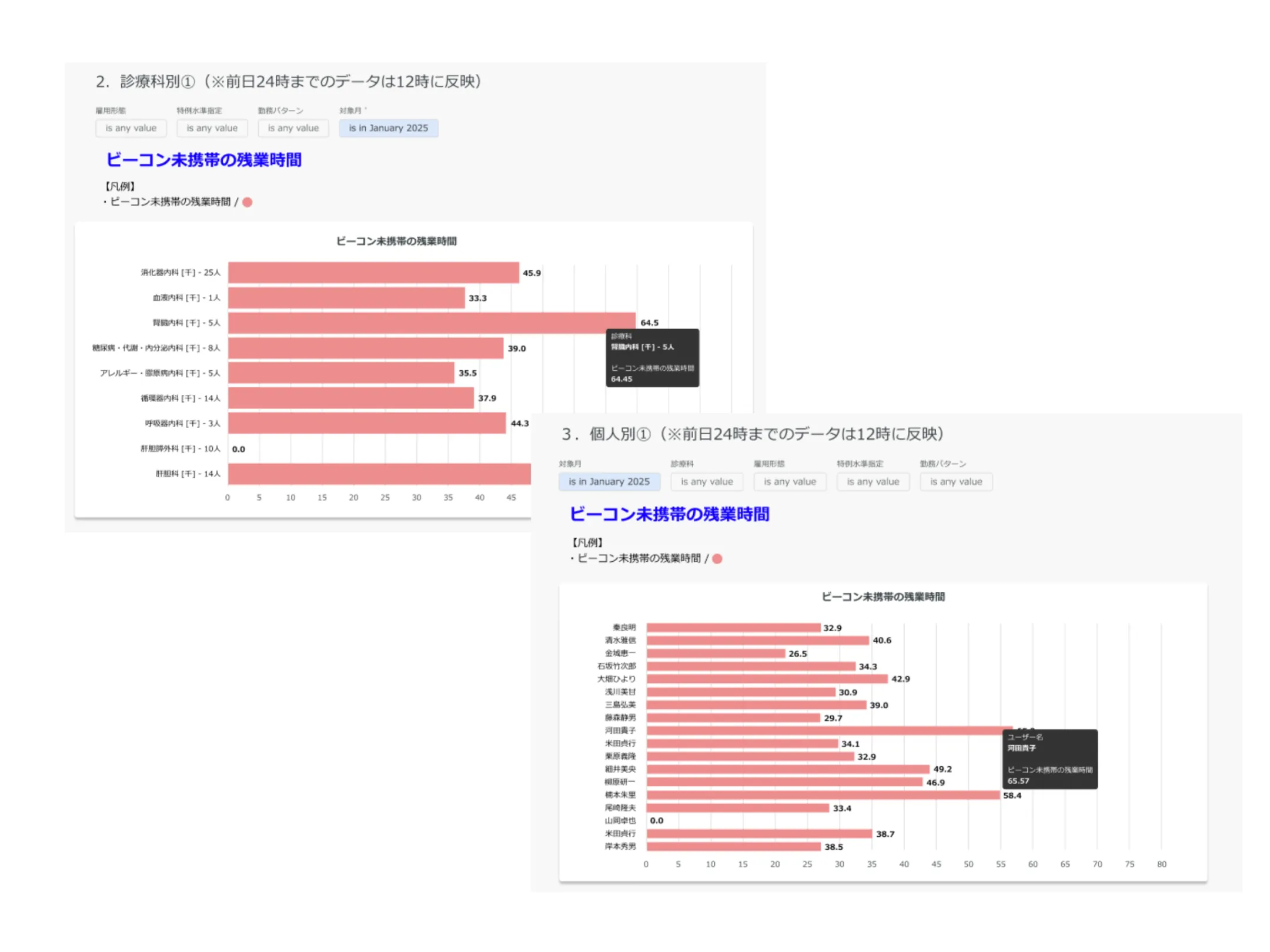 - 医局エリア滞在時の電子カルテ操作なしの残業時間の確認が可能になります(電子カルテ操作ログの取込施設のみ)