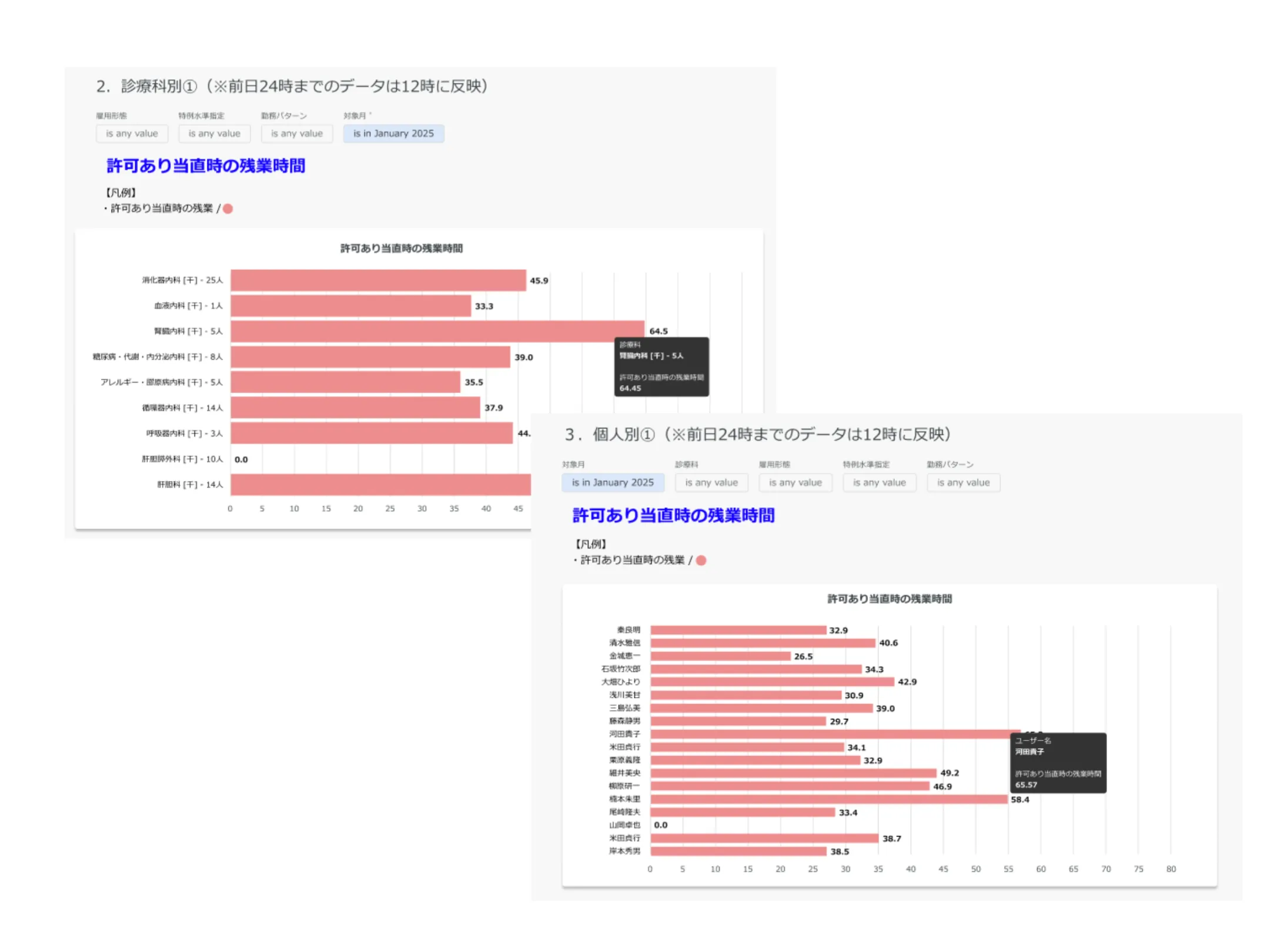 許可あり当直時の残業時間の確認が可能になります。