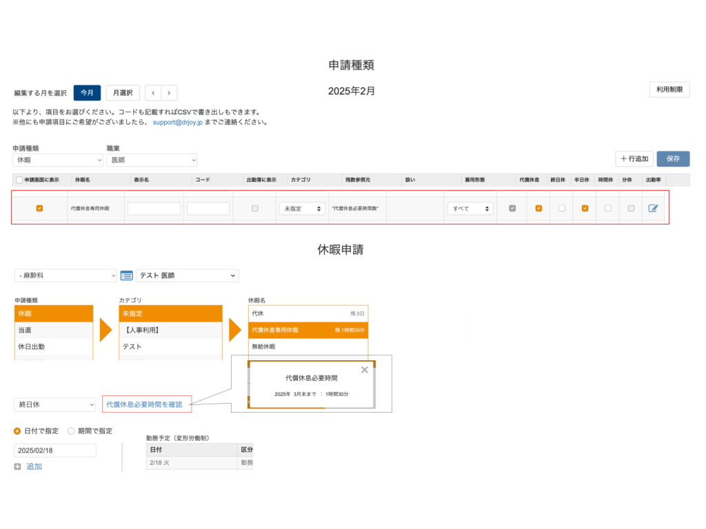 代償休息専用の休暇を申請できるように改修しました。
