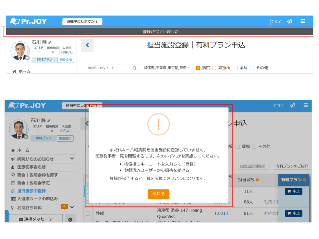 Dr.JOYへログイン後、サイドメニュー内のご契約以外の機能ページを表示する際に必要