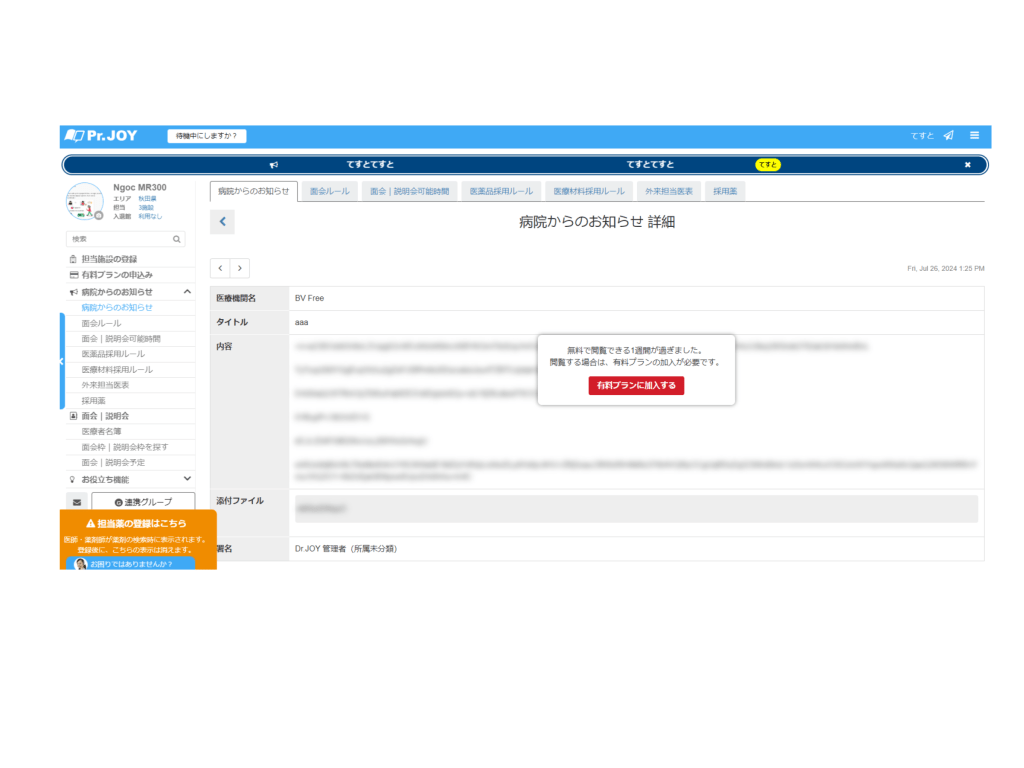 『Pr.JOY_担当施設登録|有料プラン申込』